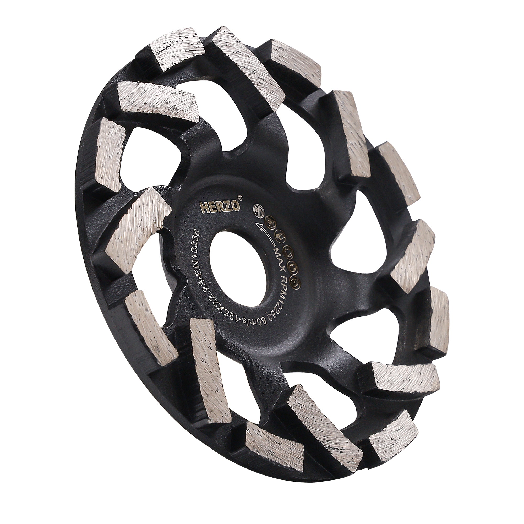 HERZO 125mm Double‑Row Diamond Grinding Cup, Low‑Heat Stable Removal, 22.23mm Arbor