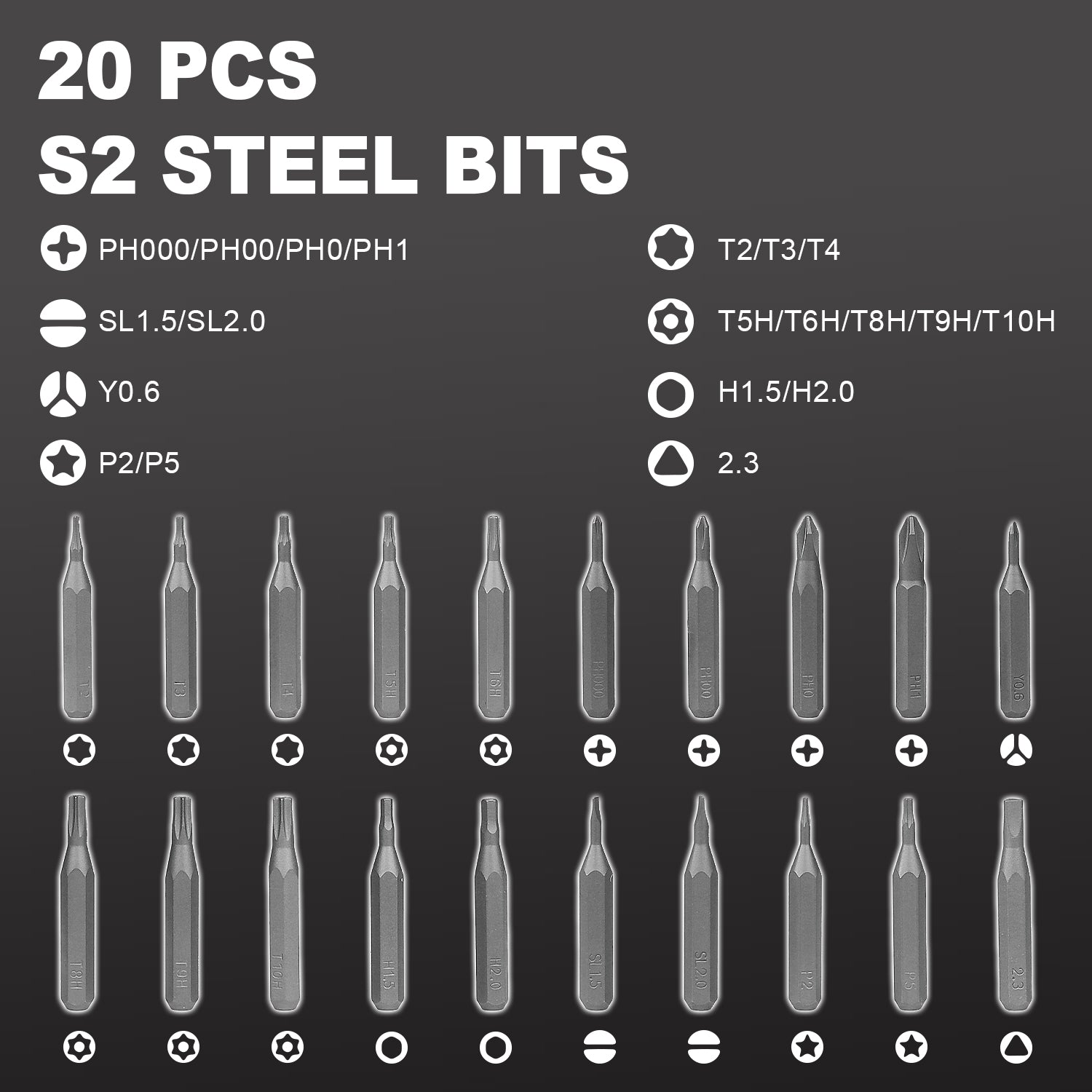 | Bit Count | 20 pcs (8 categories) |